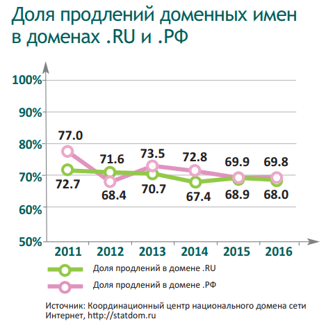 По статистике ежегодно продляется только 70% доменных имен, то есть почти треть доменов из зарегистрированного пула уходит на рынок освобождающихся доменов.